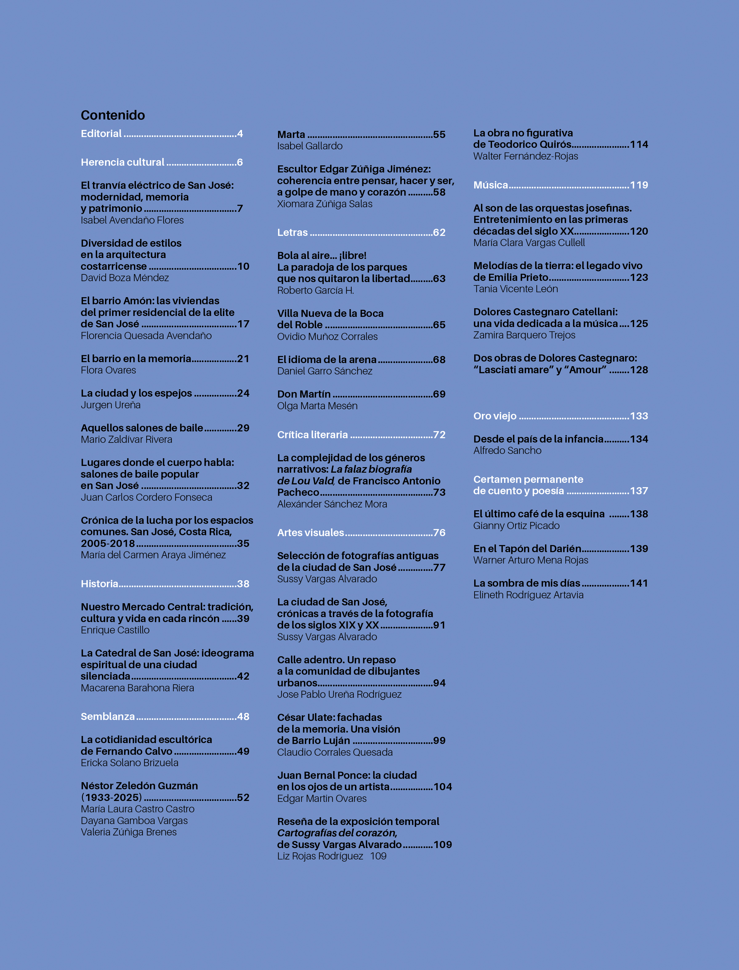 Asimismo, este número rinde homenaje a destacadas figuras de la cultura costarricense recientemente fallecidas, como Néstor Zeledón, Marta Ávila, Fernando Calvo y Édgar Zúñiga, a través de semblanzas que celebran su legado.